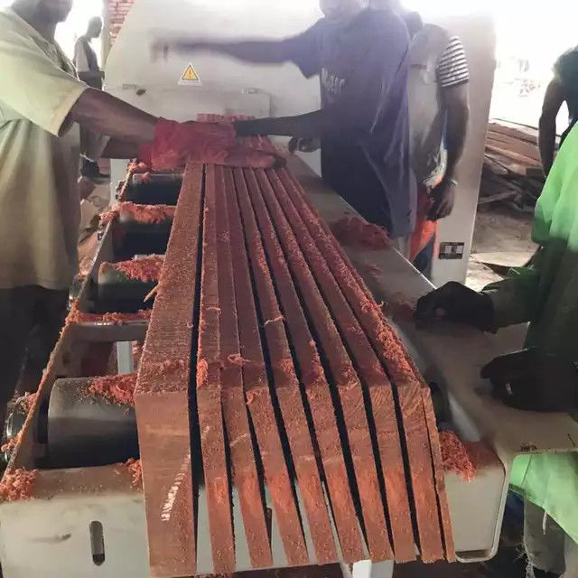 Lini produk pemrosesan log pada Twin Bandsaw + papan yang memotong Multiple Blades Ripsaw